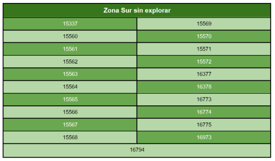 La zona jardín sur sería la continuación de la zona jardín norte. Alberga un total de 21 entradas que aún no han sido exploradas debido a que gran parte está vallada y no es posible acceder. Además, esta zona está en peligro de desaparecer al igual que la parte norte, debido a la ampliación de la cantera que como consecuencia se vería afectada la parte hidrológica de la cueva del agua.