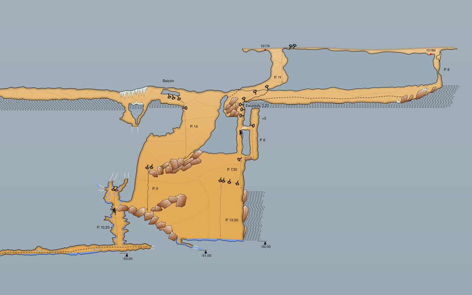 Durante estas exploraciones se encontraron también nuevas galerías, así como una conexión en los niveles inferiores que permite que la travesía de este sistema sea mucho más desarrollada a la vez que más técnica.