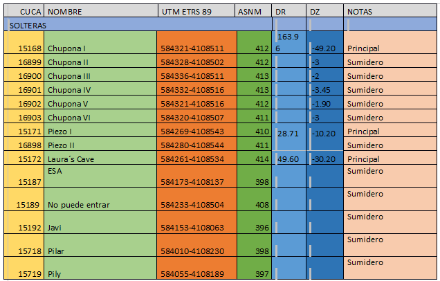 Durante las nuevas exploraciones y topografía se descubren nuevas entradas aportándose un total de 19 entradas al sistema, 14 de ellas conectadas físicamente y la de la Higuera Grande, que por situación y desarrollo se cree en su posible conexión y fue imposible realizarla físicamente por la estrechez que encontramos en su continuación.