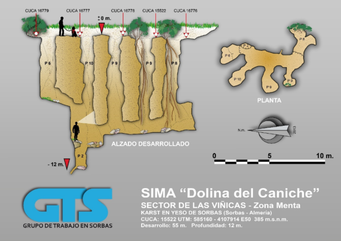Sima -31m. Topografía GTS año 2013. Estrechez al fondo, pero sale aire