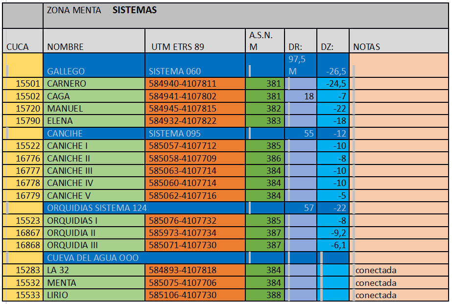 Cronologia de las exploraciones de la Cueva del Agua 000Esta zona se encuentra al este de la Cueva del Agua. Tiene 77 entradas sin explorar, 3 conectadas con la cueva del agua, 7 entradas solteras y 12 entradas de 3 sistemas. Son por 99 entradas en total. Esta zona es casi desconocida, ya que el ECA se ha forzado mucho en la zona central y ha trabajado para conectar esta zona. Así que la zona menta esta para explorar y tratar de topografiar.