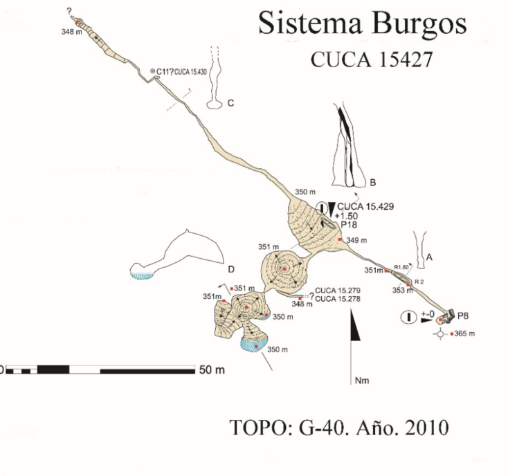 Se vuelve a topografiar en 2010 por el G-40, obteniendo un desarrollo final de 268 m y -30m de profundidad. El G-40 realiza esta topografía desconociendo las otras tres entradas descubiertas por el campamento del ECA durante el verano de 2002, por lo que se hace topografía solo tres entradas.