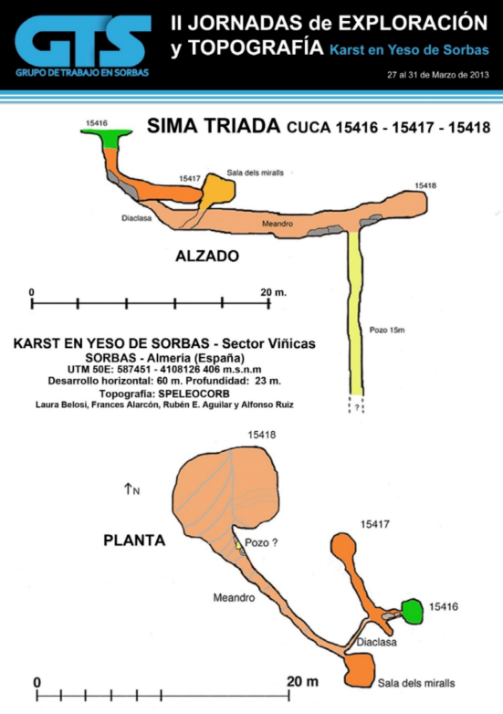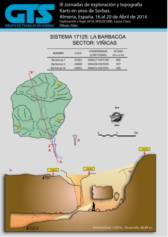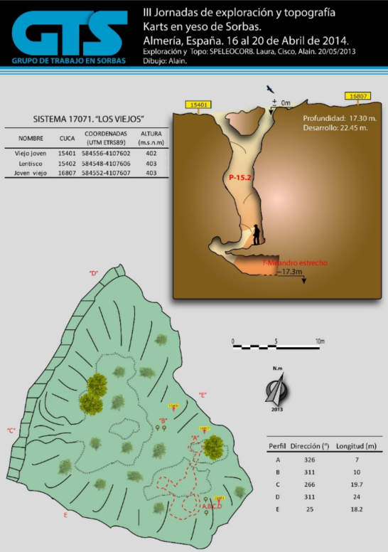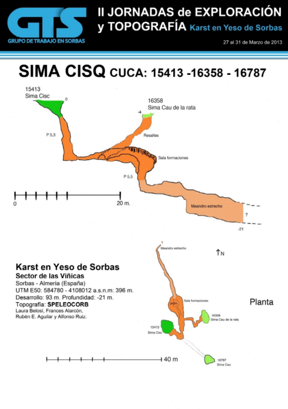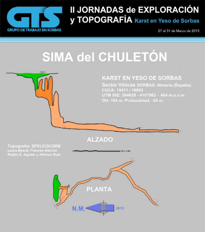 Se vuelve a Explorar y topografiar del 27 a 31 de marzo 2013, por Speleocorb y GTS. Miembros del equipo de trabajo: Laura, Cisco, Rubén Aguilar, Alfonso Ruíz y Alain. Hay 4 entradas y un sifón al final.