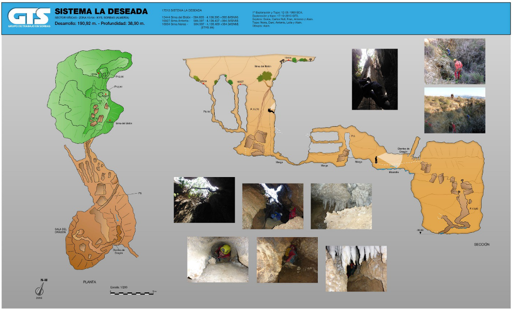 Sima Profundidad 12,9m. Pertenece al sistema la deseada, Topografía GTS